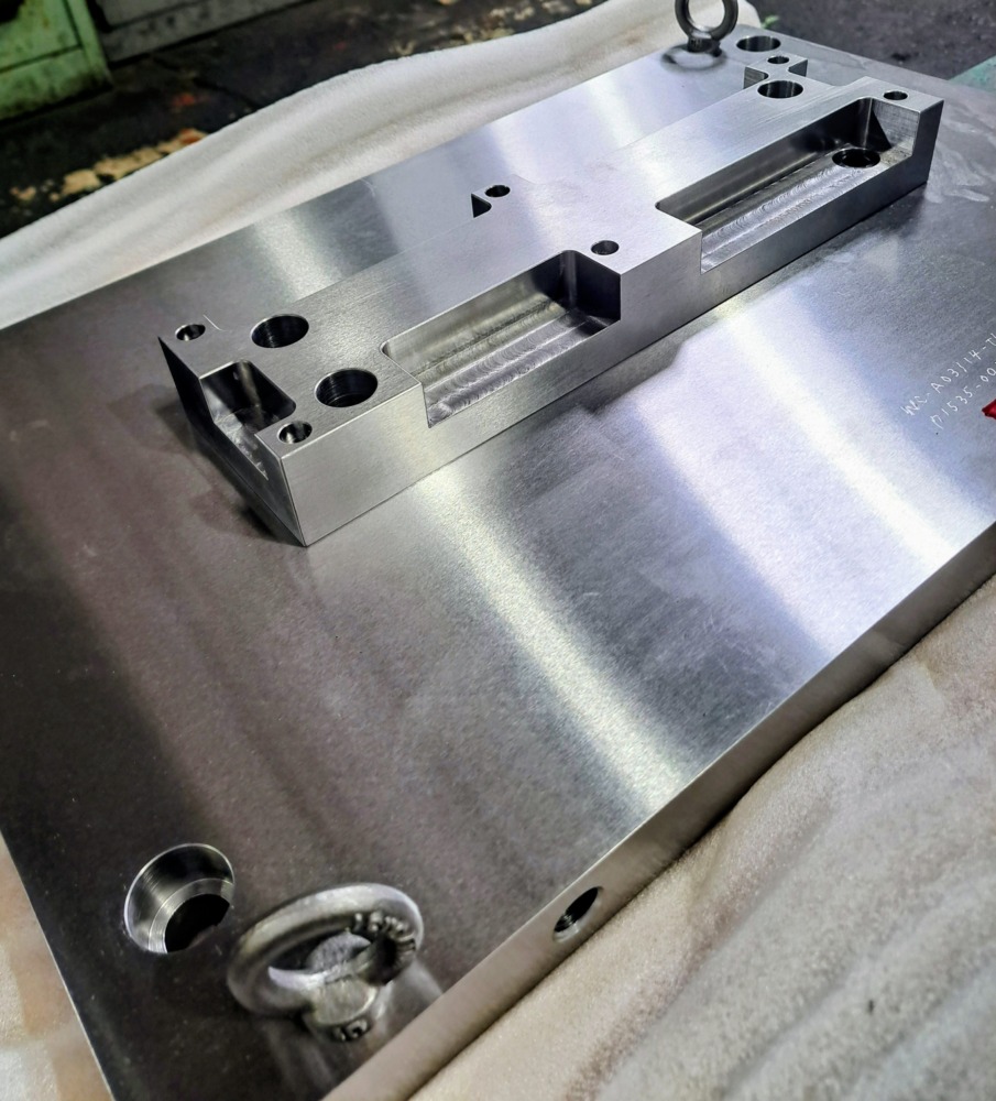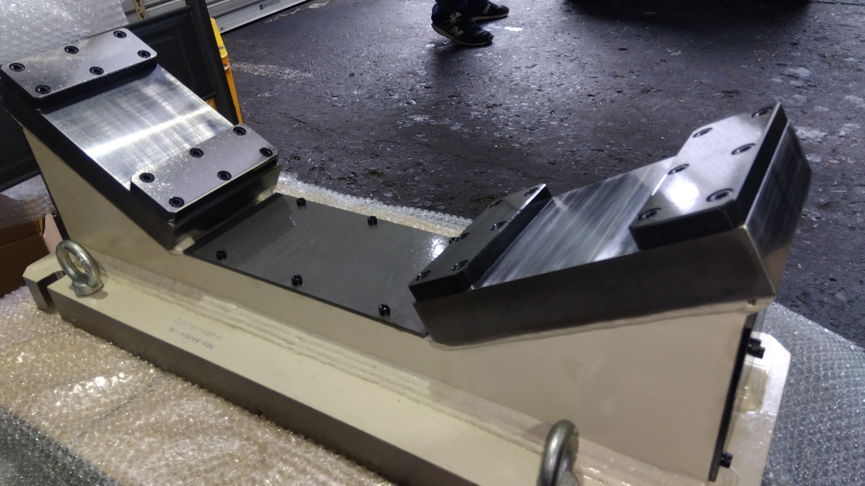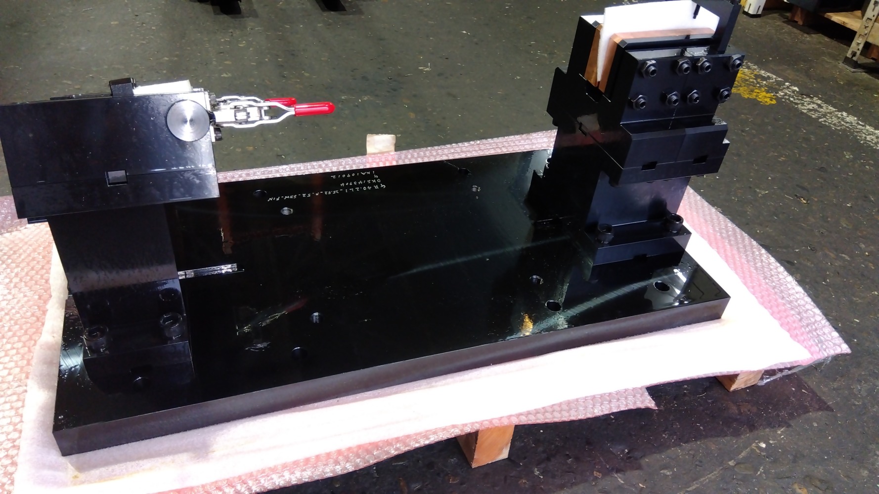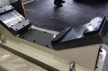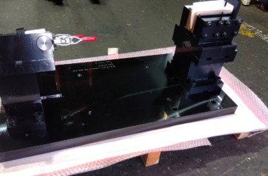 ■発電所向けの加工治具は大型で思い部品(タービンローター、ブレード、フランジ、軸受けなど) を正確に固定、支持して修正加工や追加工を安全かつ効率的に行う目的の治具。 ■黒染め施工 ■SS400 /L1200 x W500